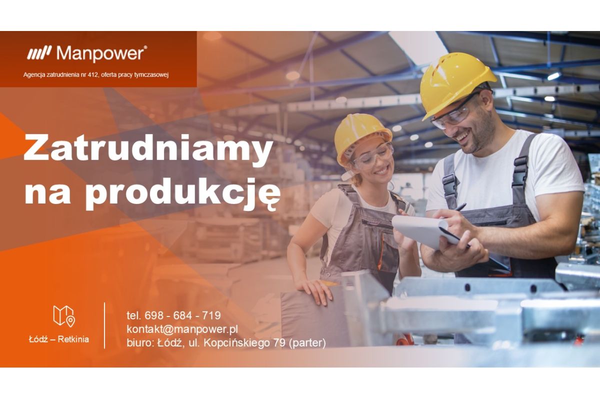 Agencja Pracy Tymczasowej Manpower (cert. 412) dla jednego ze swoich Klientów poszukuje osób chętnych do pracy.